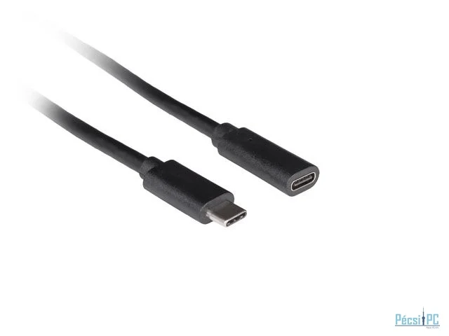 USB kábel, USB-C, USB-C, USB3.1, Male/Female, 0,5m, Black, Adatkábel
