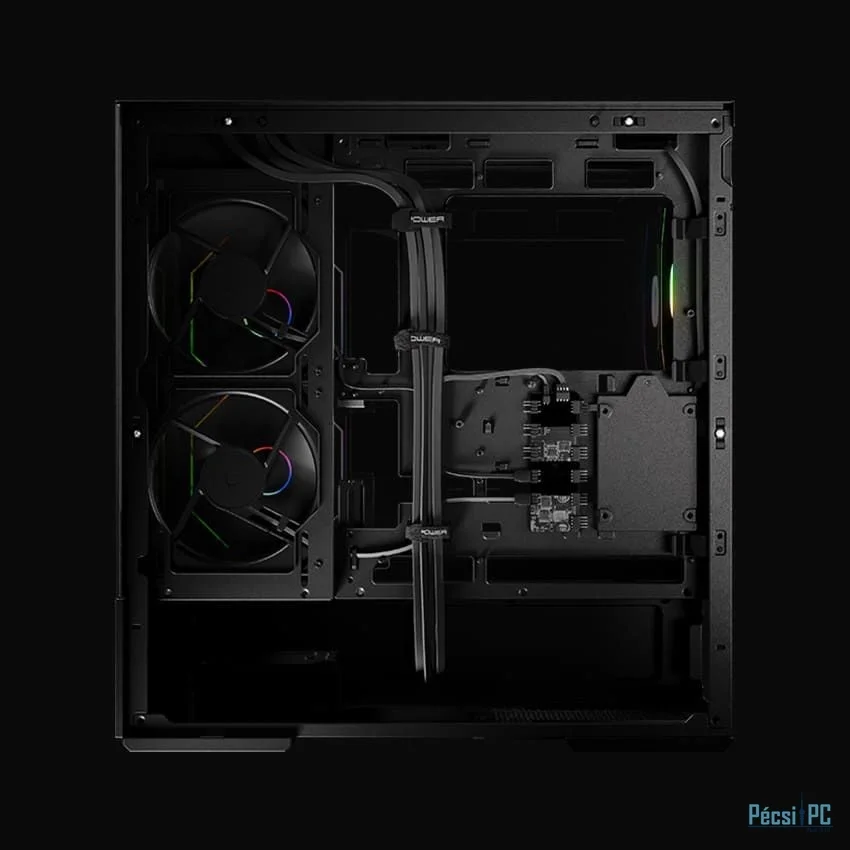 ATX, Black, 2x3,5", 2x2,5", 2xUSB3.2, 1xUSB Type-C, Audio, Táp nélkül, 472x455x235mm, Ventilátor:2x14cm, 1x12cm, Tempered glass window, RGB, Gamer