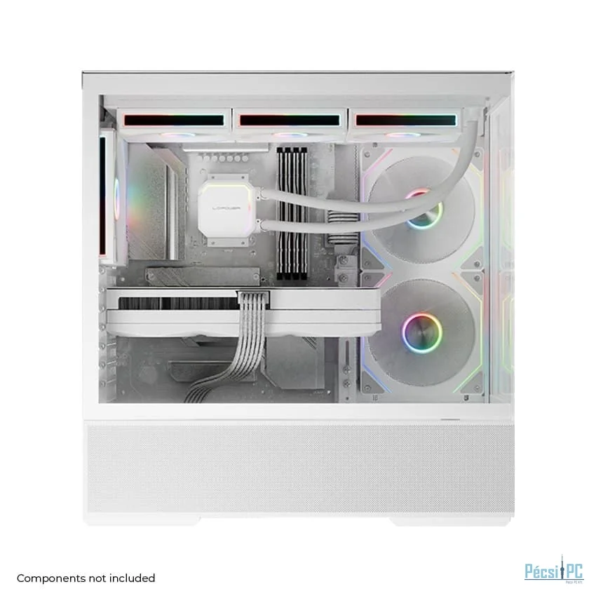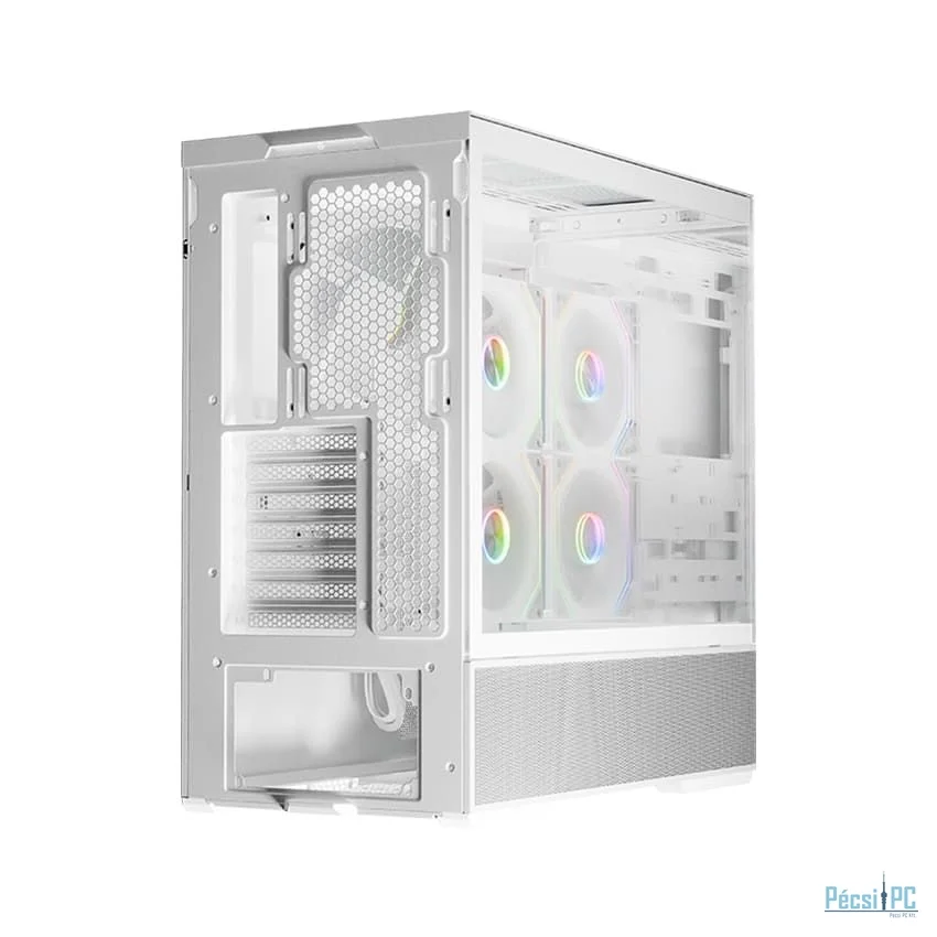 ATX, White, 2x3,5", 2x2,5", 2xUSB3.2, 1xUSB Type-C, Audio, Táp nélkül, 472x455x235mm, Ventilátor:2x14cm, 1x12cm, Tempered glass window, RGB, Gamer