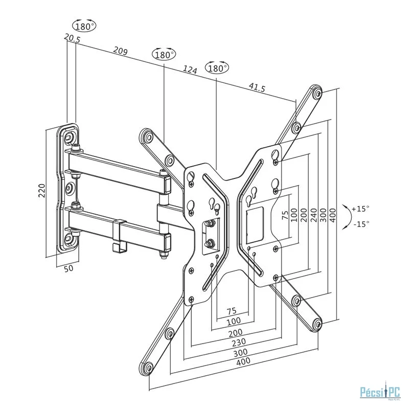Kijelző, 23"-55", Fali
