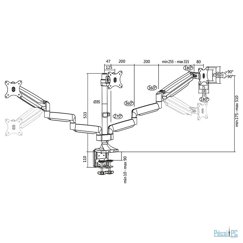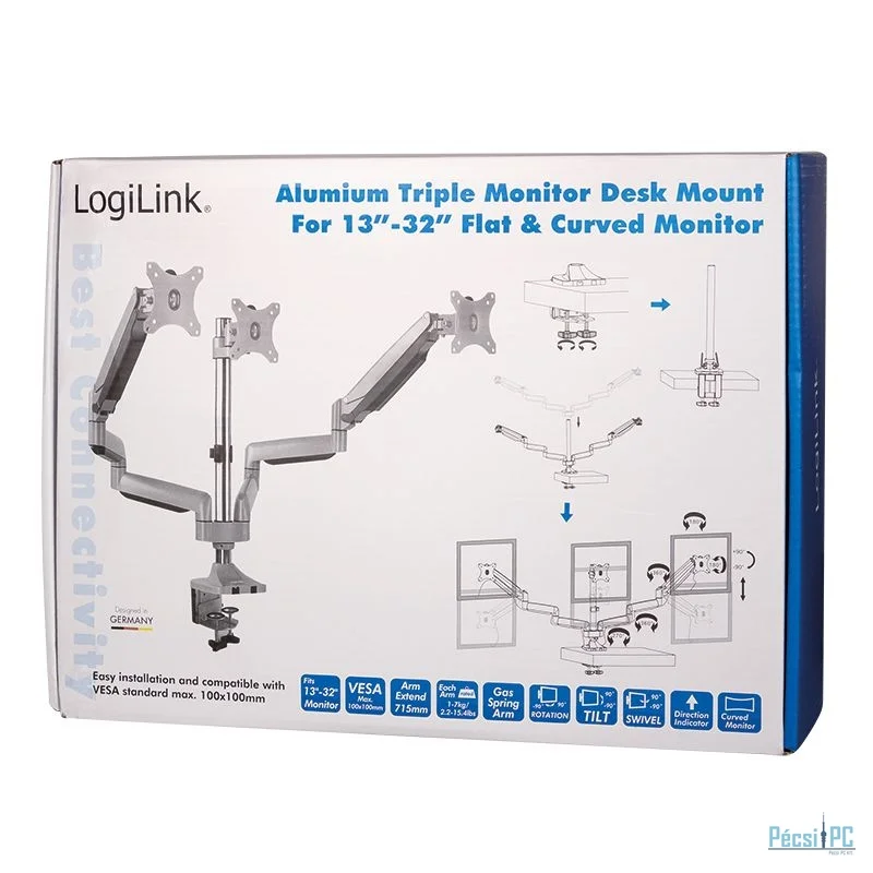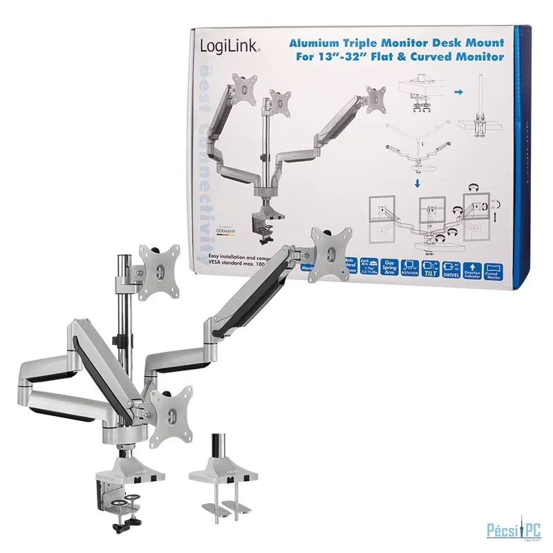 Logilink BP0052 Triple Alumium Monitor Desk Mount Tilt Silver