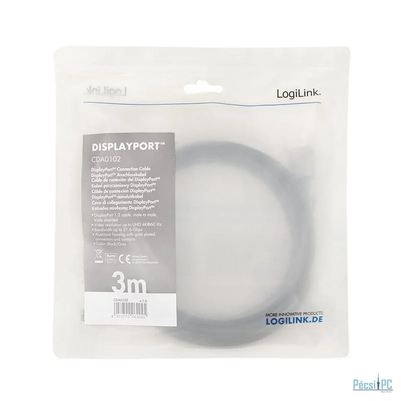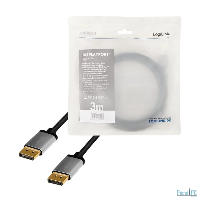 Logilink DisplayPort cable DP/M to DP/M 4K/60 Hz 3m Black/Grey