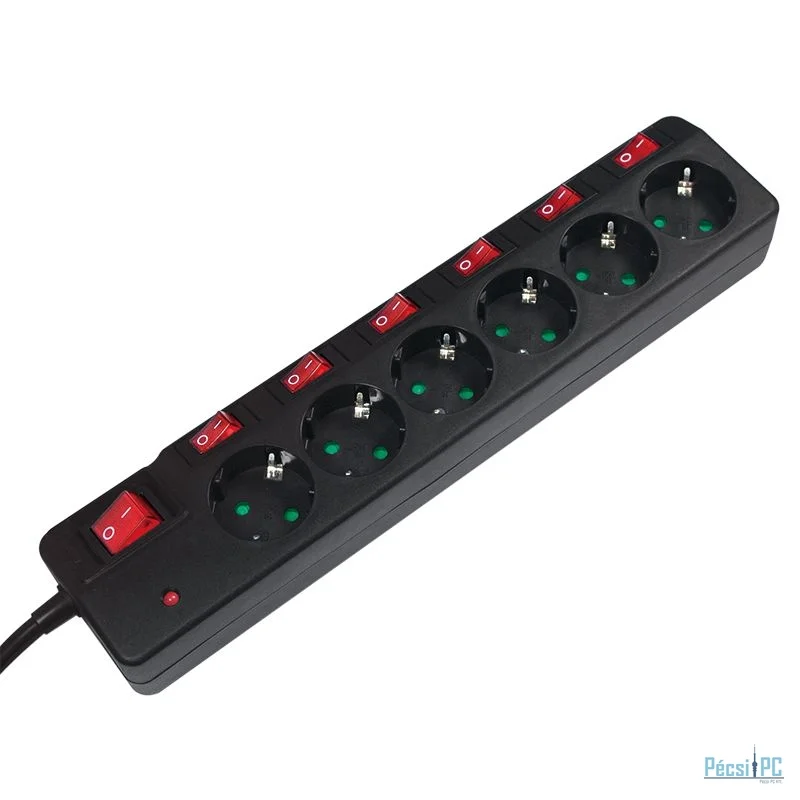Logilink LPS233 Túlfeszültségvédő Kapcsolóval 6DIN 1,5m Black