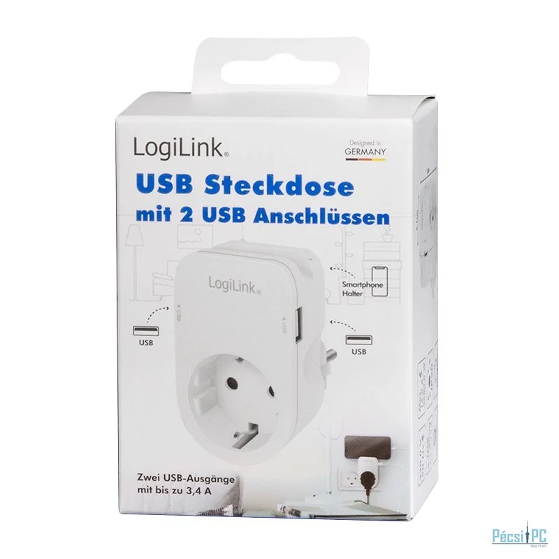 Logilink Socket adapter with holder 1x CEE 7/3 & 2x USB-A