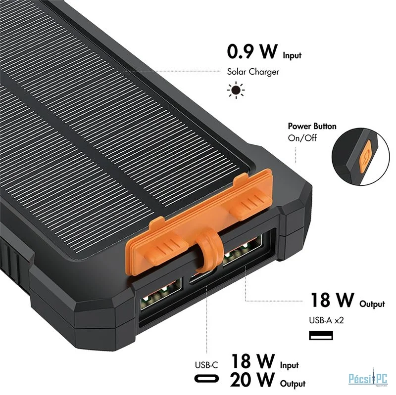 Logilink Solar LED Light 10000 mAh Power Bank Black/Orange