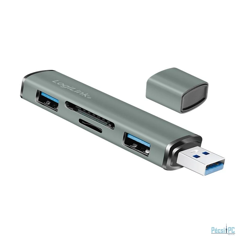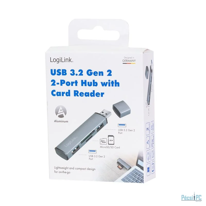Logilink UA0394 USB 3.2 Gen2 2-port hub with card readers Aluminium