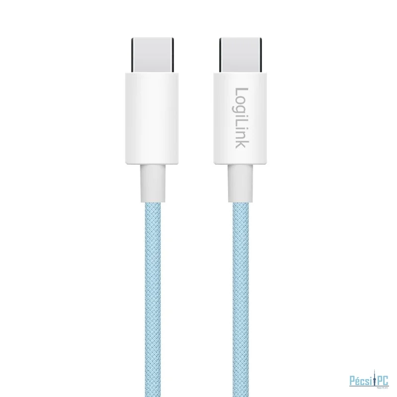 USB kábel, USB-C, USB-C, USB2.0, Male/Male, 0,5m, Blue, Töltő és adatkábel, Szövetborítás