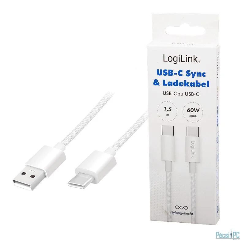 USB kábel, USB-C, USB-C, USB2.0, Male/Male, 1m, White, Töltő és adatkábel, Szövetborítás