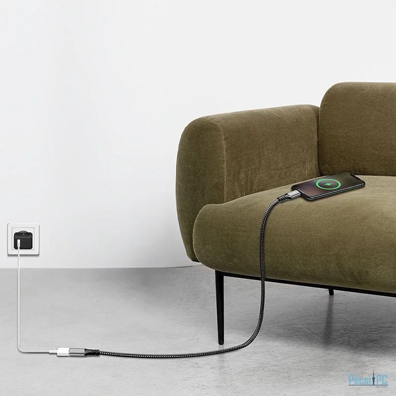 USB kábel, USB-C, USB-C, USB3.2, Male/Female, 2m, Black, Töltő és adatkábel, Szövetborítás