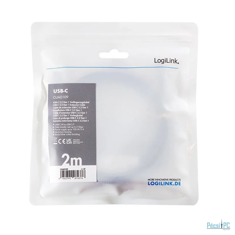 Logilink USB 3.2 Gen1 Type-C cable M/F 2m Black/Grey