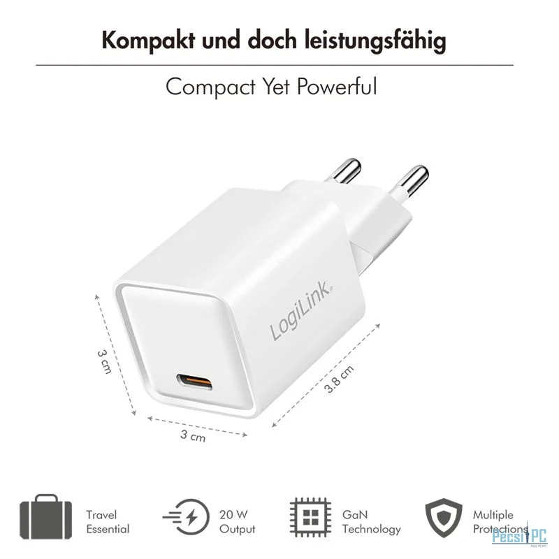 Logilink USB-C socket adapter 20W (PD+QC 3.0) White