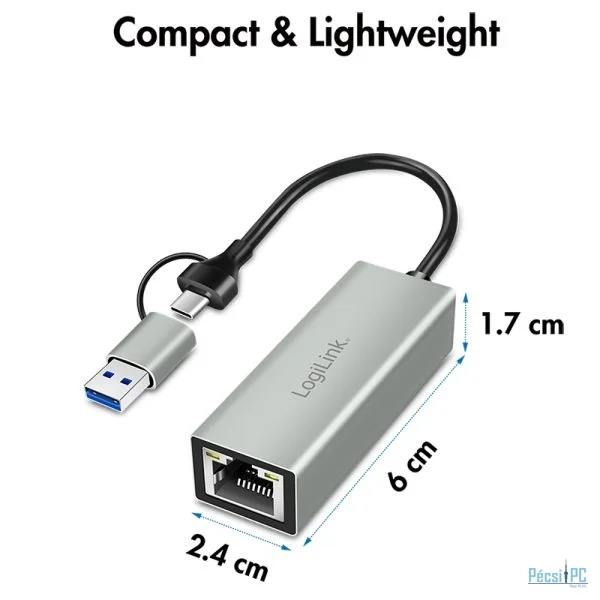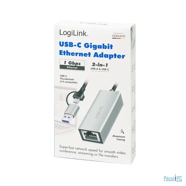 Logilink USB-C to Gigabit Ethernet Adapter with 2-in-1 USB Connection Grey
