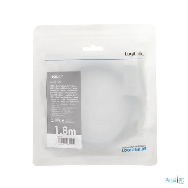 Logilink USB Type-C cable C/M to DP/M 4K alu1,8m Black/Grey