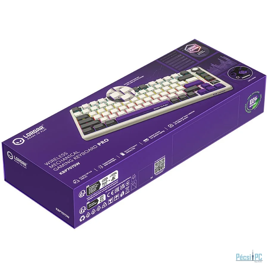 Billentyűzet, USB, Wireless 2,4GHz, Bluetooth, Tenkeyless (TKL), Megvilágítás, Mechanikus switch, Purple switch, Beige, ENG, Gamer