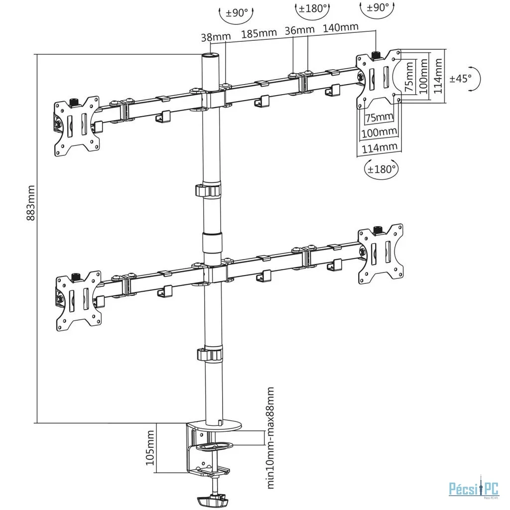Manhattan Universal Four Monitor Mount with Double-Link Swing Arms