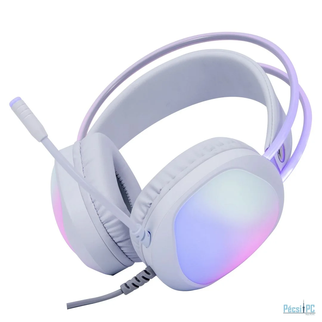 Headset, 2.0, USB, Kábel:2,05m, 16Ohm, 20Hz-20kHz, Mikrofon, White, RGB, Gamer