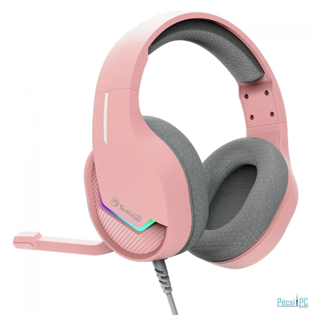 Headset, 2.0, USB, Kábel:2,05m, 32Ohm, 20Hz-20kHz, Mikrofon, Pink, RGB, Gamer