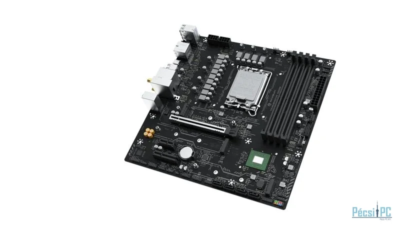 LGA1851, Intel B860, 5xDDR5, Max:6400MHz, Max:192GB, 1xPCIE16, 1xPCIE4, 1xPCIE1, 4xSATA3, 6xUSB, 2xUSB3.2, 1xUSB4.0C, HDMI, DisplayPort, 5.1, 2.5Gb/s LAN, WiFi, Bluetooth, 3xM.2, Micro-ATX