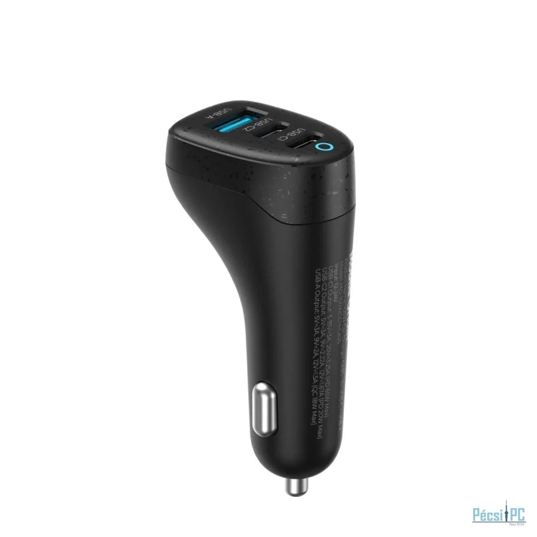 Felejtse el a lassú töltést az autóban. Ez a kicsi fekete töltő a modern USB Power Delivery 3.0 (PD 3.0) technológiának köszönhetően akár 100 W (2x USB-C + USB-A egyszerre) valódi teljesítményt biztosít.