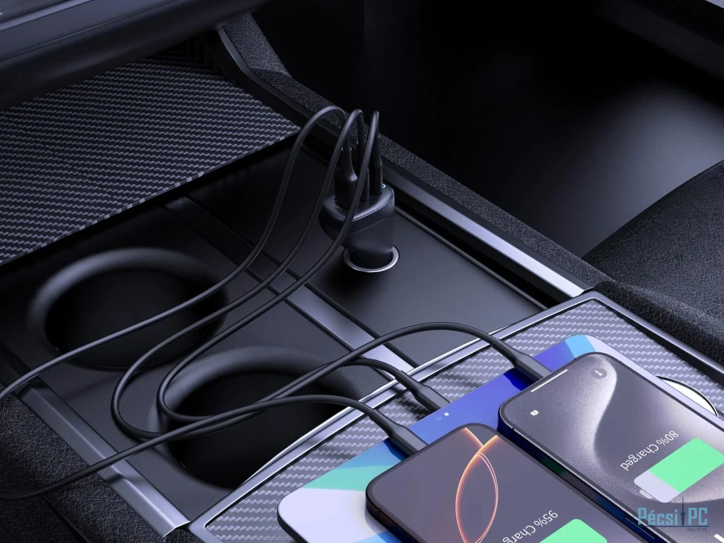 A maximális 100 W teljesítményű, három porttal (2x USB-C PD + USB-A) rendelkező gyors töltő autós töltővel egyszerre töltheti fel laptopját, táblagépét és telefonját – még hosszabb utakon is. A kompakt kialakítás tökéletesen illeszkedik a 12–24 V-os aljzatba.