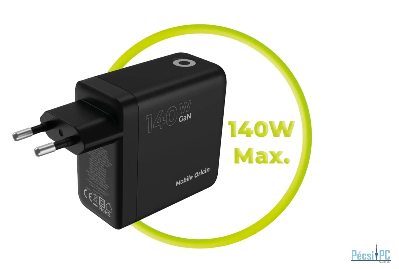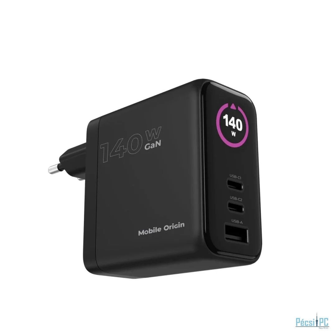 Mobile Origin 140W GaN Display Charger PW21 2x USB-C+USB-A Black