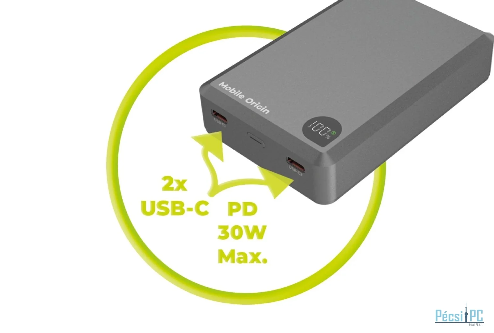 A két USB-Cport rugalmasságot biztosít, mivel bemenetként és kimenetként is működik. A PowerBankot akár 30 W teljesítményű kábellel gyorsan feltöltheti, vagy ugyanilyen teljesítményű kábellel töltheti fel készülékét.