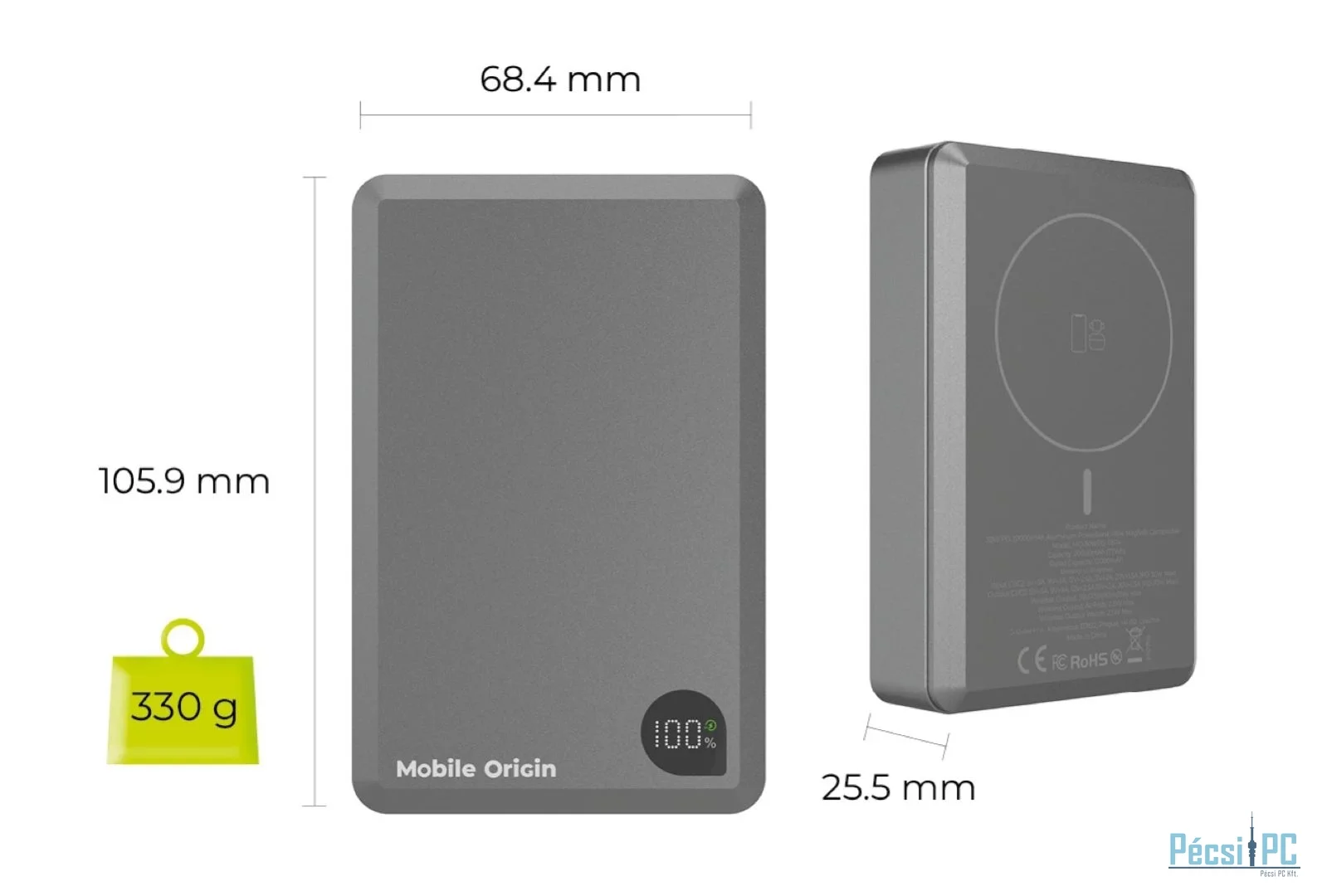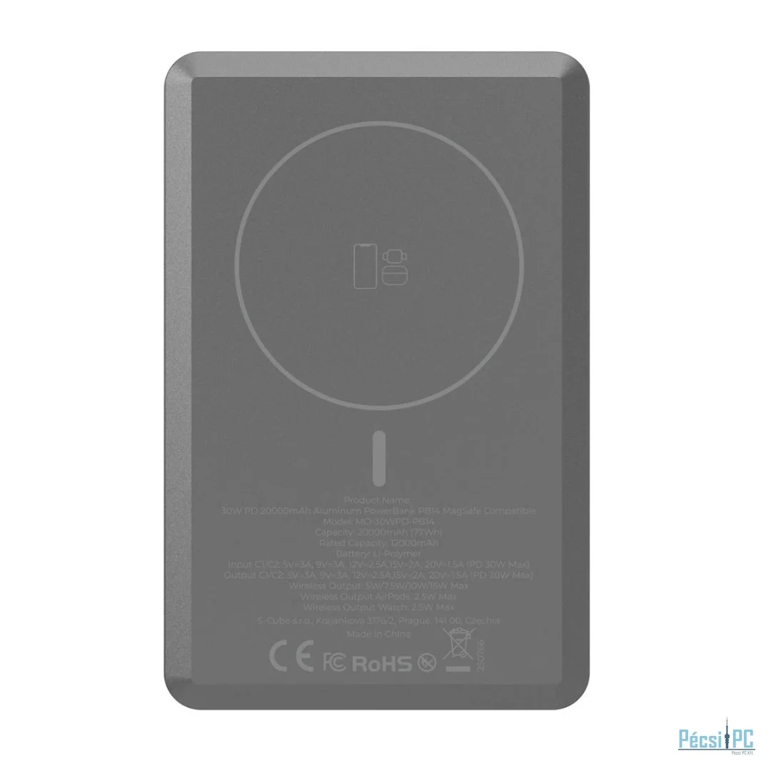 A Mobile Origin prémium alumínium Power Bank 20 000 mAh-s nagy kapacitásával a legjobb megoldás az elektronikai eszközök útközbeni töltésére. MagSafe támogatást kínál az iPhone vezeték nélküli töltéséhez, kompatibilis az Apple Watch és az AirPods fejhallgatók töltésével, valamint 30 W kimeneti teljesítményt biztosít USB-C-n keresztül Power Delivery technológiával.