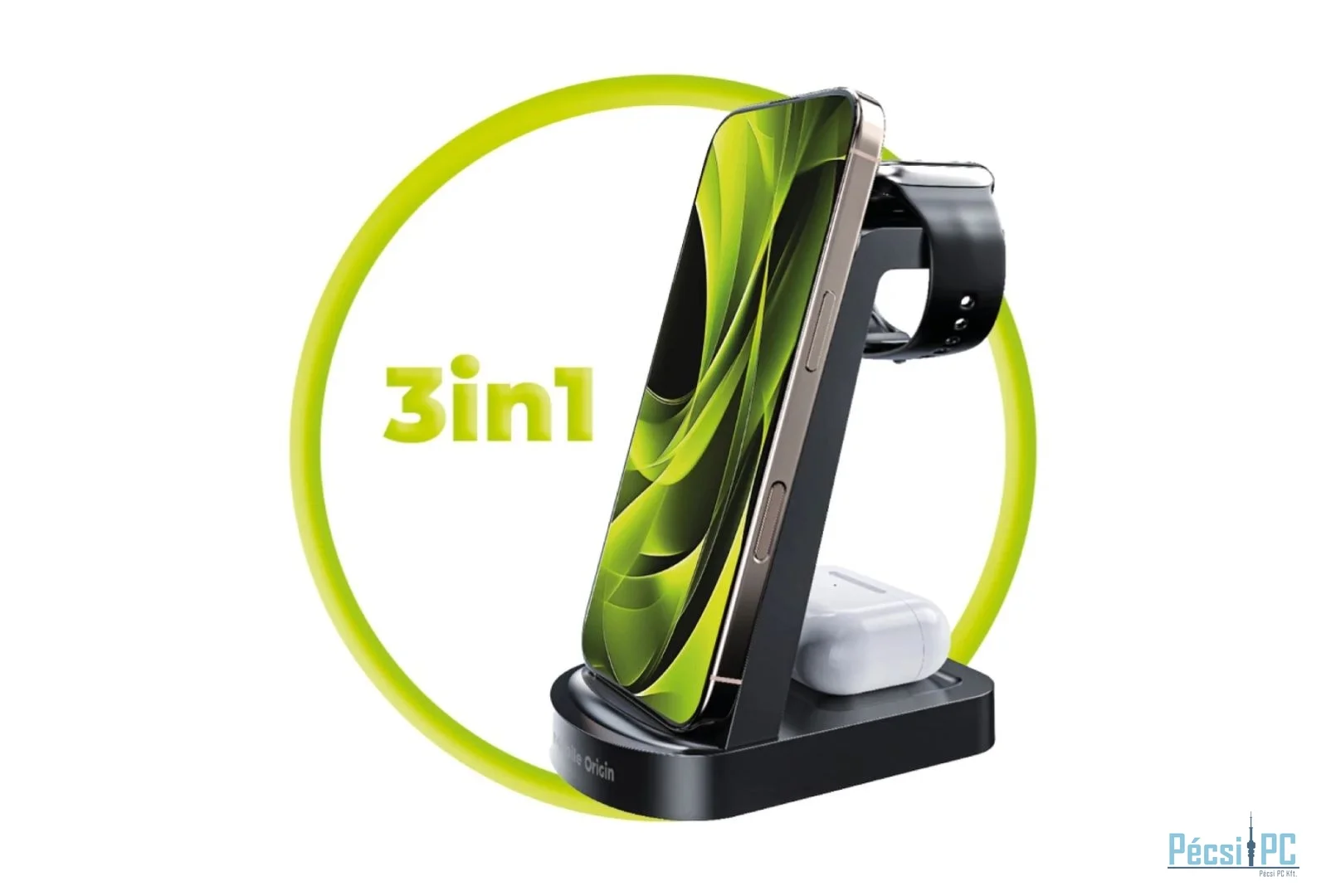 Ismerd meg a PW14 vezeték nélküli 3in1 töltőt - egy nagyszerű töltőállvány az Apple készülékek tulajdonosai számára. Egyszerre tölti az iPhone-t, az Apple Watch-ot és az AirPods-t egyetlen kábellel. Intelligens töltést biztosít túlmelegedés, túlfeszültség, rövidzárlat és túlterhelés elleni védelemmel, és lehetővé teszi a portré és a tájoló tájolást is, így töltés közben videókat nézhetsz.
