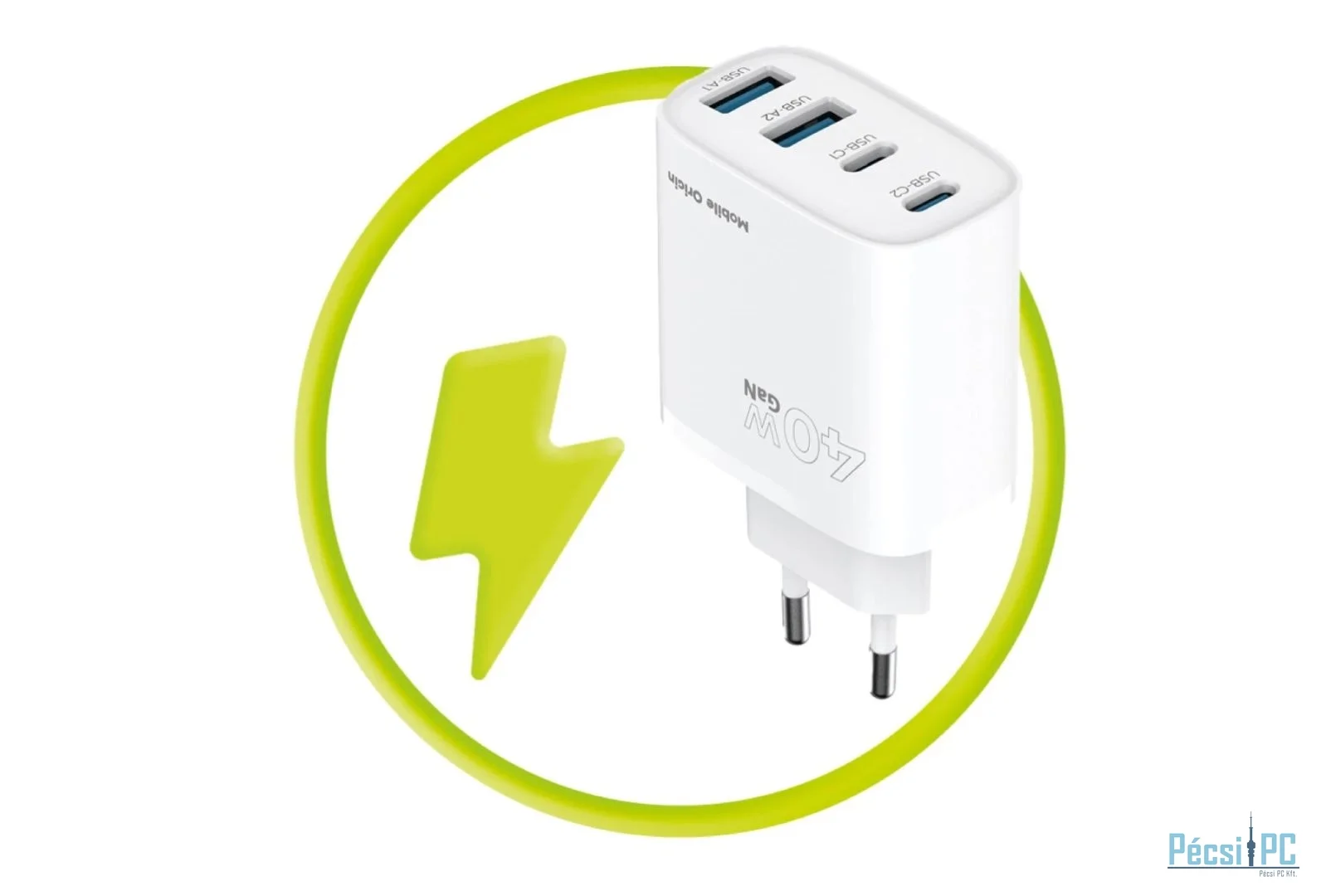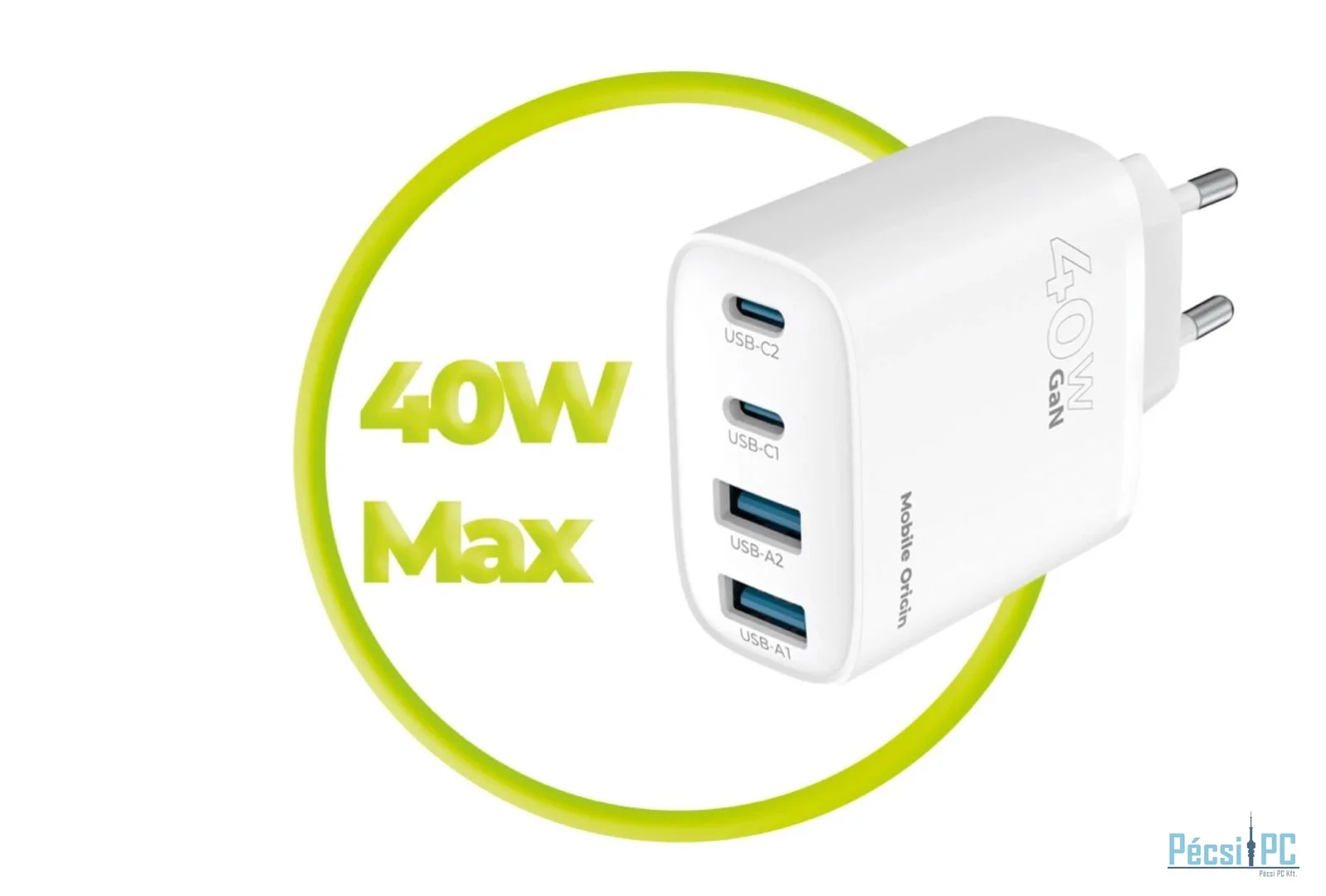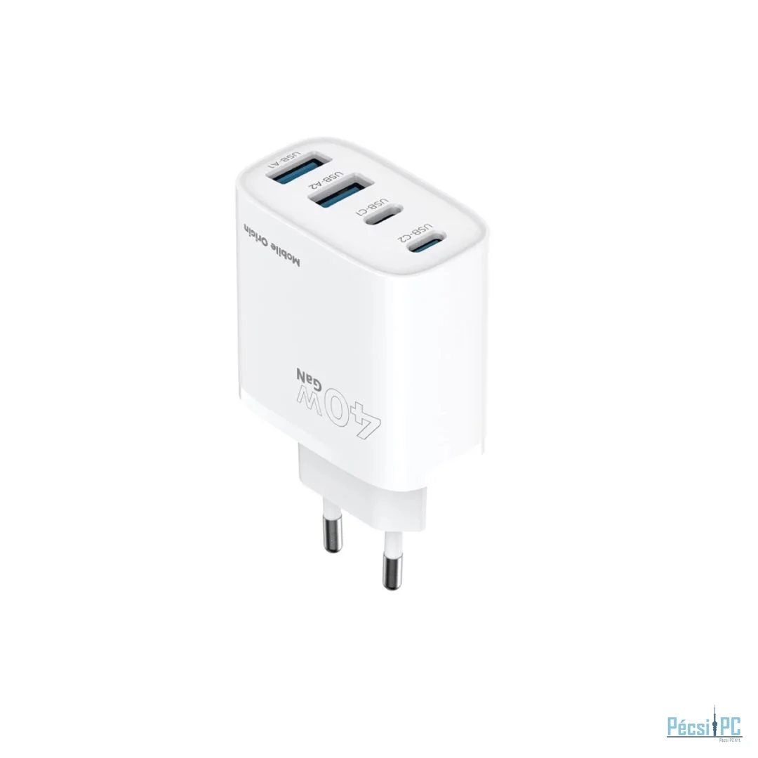 40 W-os gyorstöltés a legújabb GaN technológiával, elegáns, kompakt kivitelben. Egyszerre akár 4 eszközt is tölthetsz a 2x USB-C és 2x USB-A portokkal. Ideális otthoni vagy utazáshoz, gyorsaságot, biztonságot és hordozhatóságot biztosít, bárhová is megy.