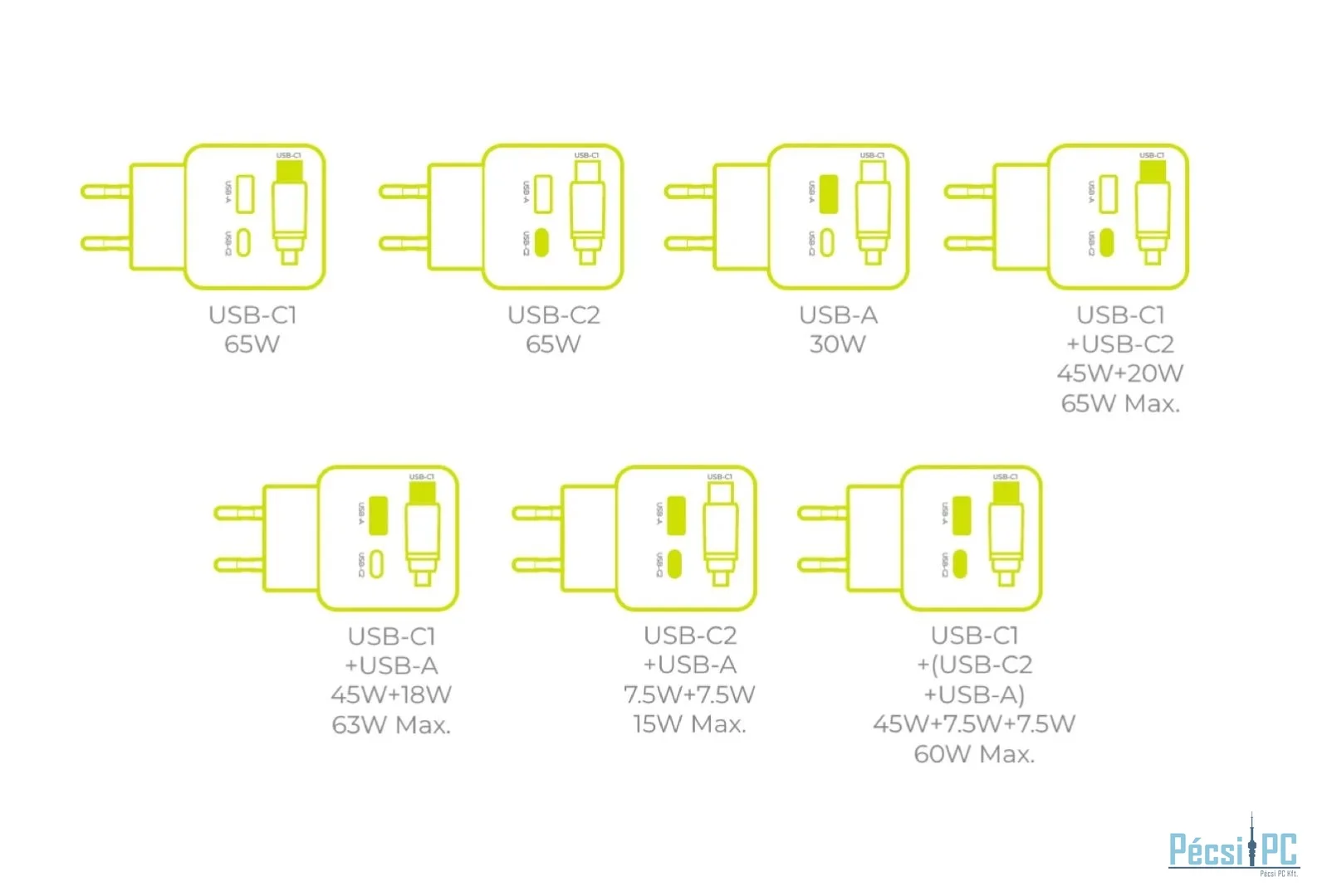 Az akár 65W-os kimeneti teljesítménynek köszönhetően könnyedén fedezheti a modern laptopok, táblagépek, mobiltelefonok és egyéb kiegészítők energiaigényét. A nagy teljesítmény biztosítja bármely kompatibilis eszköz gyors feltöltését, így mindig készen áll a munkára hosszú várakozás nélkül.