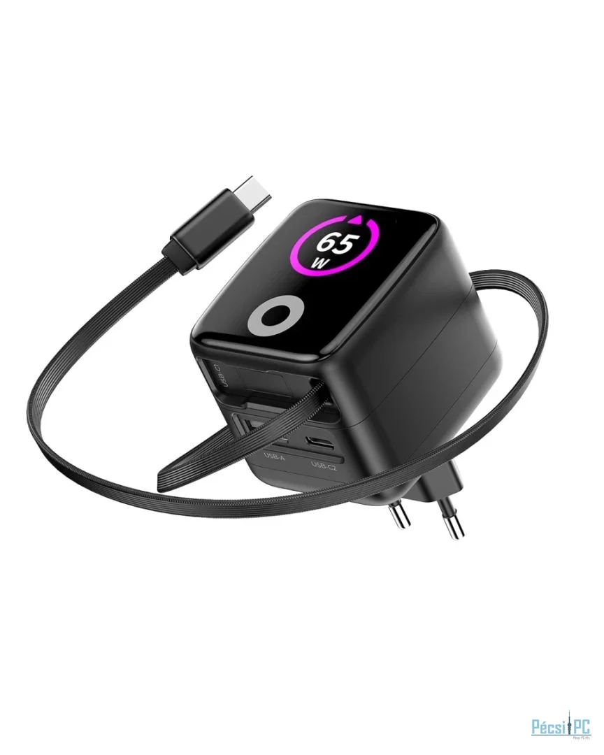 Fedezze fel a töltés jövőjét a fejlett 65W-os GaN töltőnkkel, amely kompakt kialakítást és intelligens kijelzőt ötvöz az azonnali teljesítményellenőrzéshez!