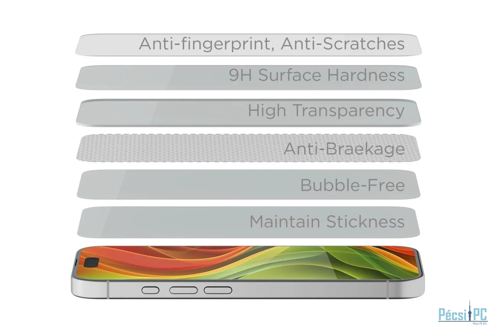 Ennek az üvegnek minden millimétere megvan a maga célja. Hat pontosan egymáshoz igazított réteg alkot egy egészet, amely minden oldalról védi a kijelzőt: