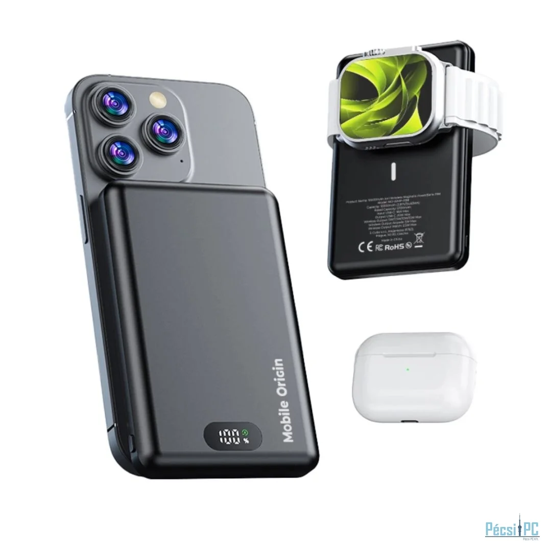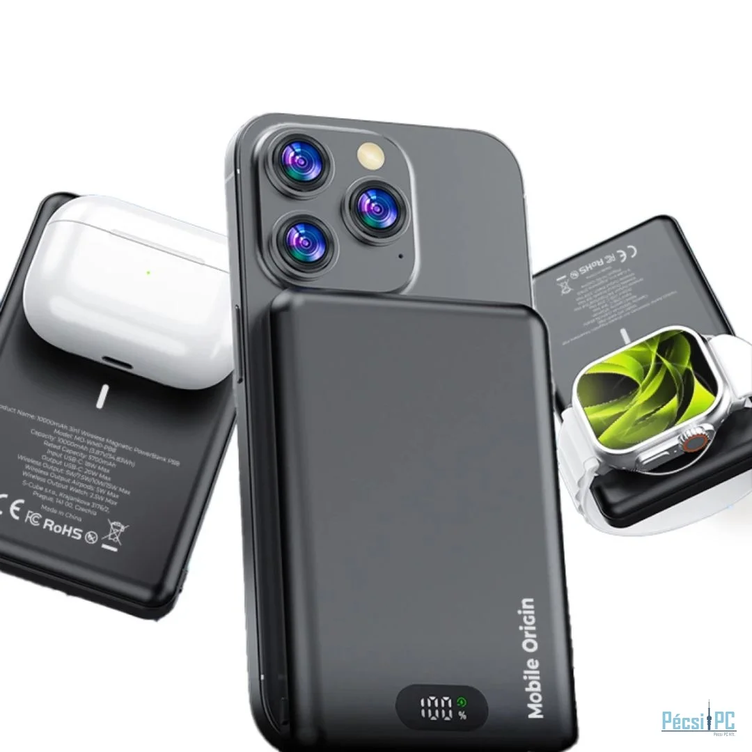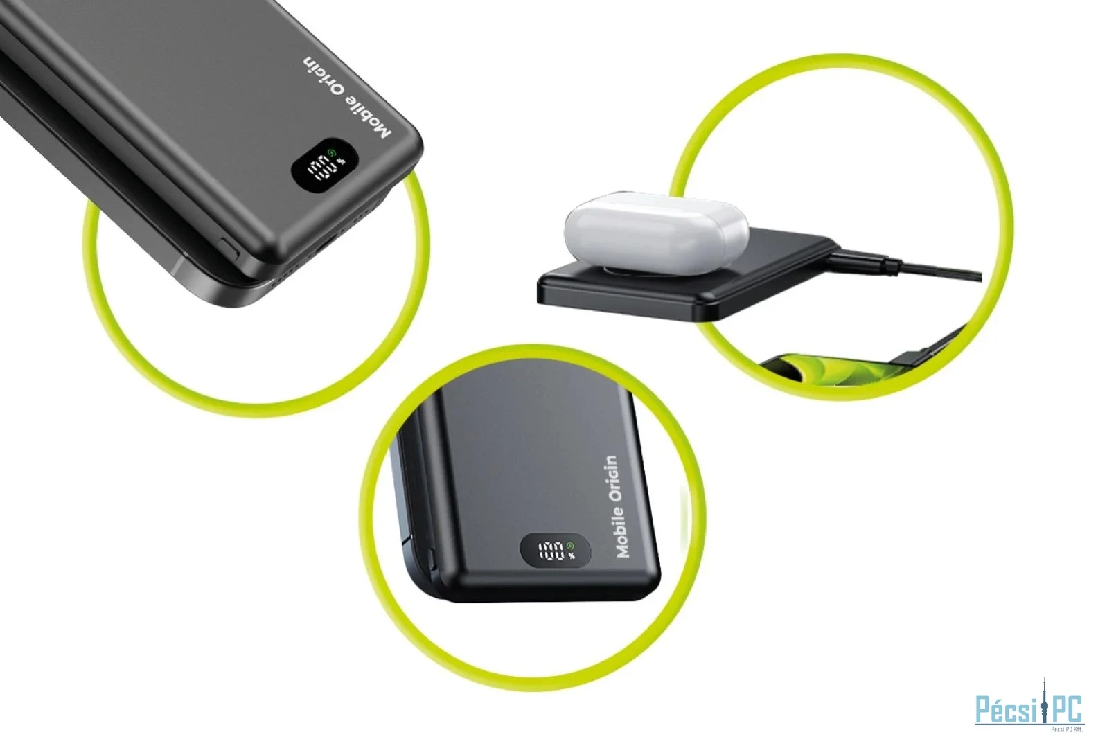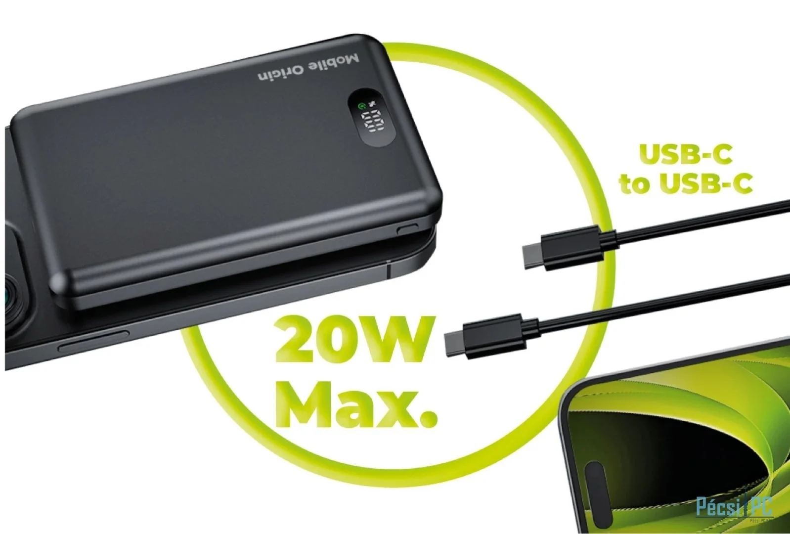 A Mobile Origin 10 000 mAh Premium Wireless PowerBank ideális megoldás a gyors és kényelmes töltéshez útközben. MagSafe támogatást kínál a biztonságos, akár 15 W-os vezeték nélküli töltéshez, USB-C kimenettel és akár 20 W-os Power Delivery technológiával. Kompakt méretei, alacsony súlya és egyértelmű LED töltésállapot-jelzője révén tökéletes választás mindennapi használatra és utazáshoz.