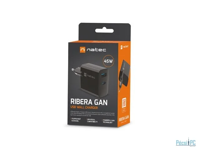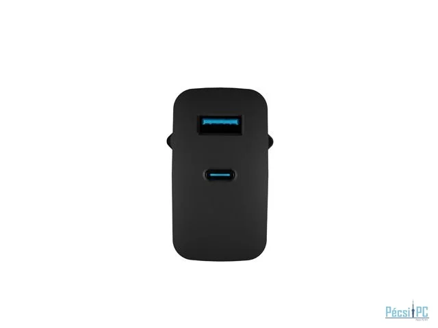 Adapter, 1xUSB-A, 1xUSB-C, 5V/12V, 3A, 45W, PD, Black