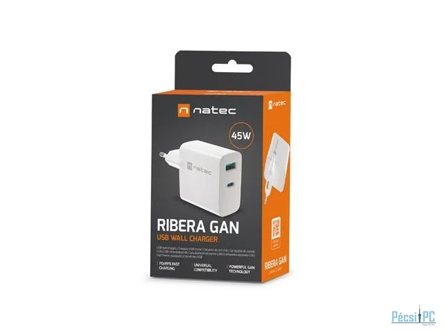 Adapter, 1xUSB-A, 1xUSB-C, 5V/9V/12V/15V/20V, 3A, 45W, PD, White