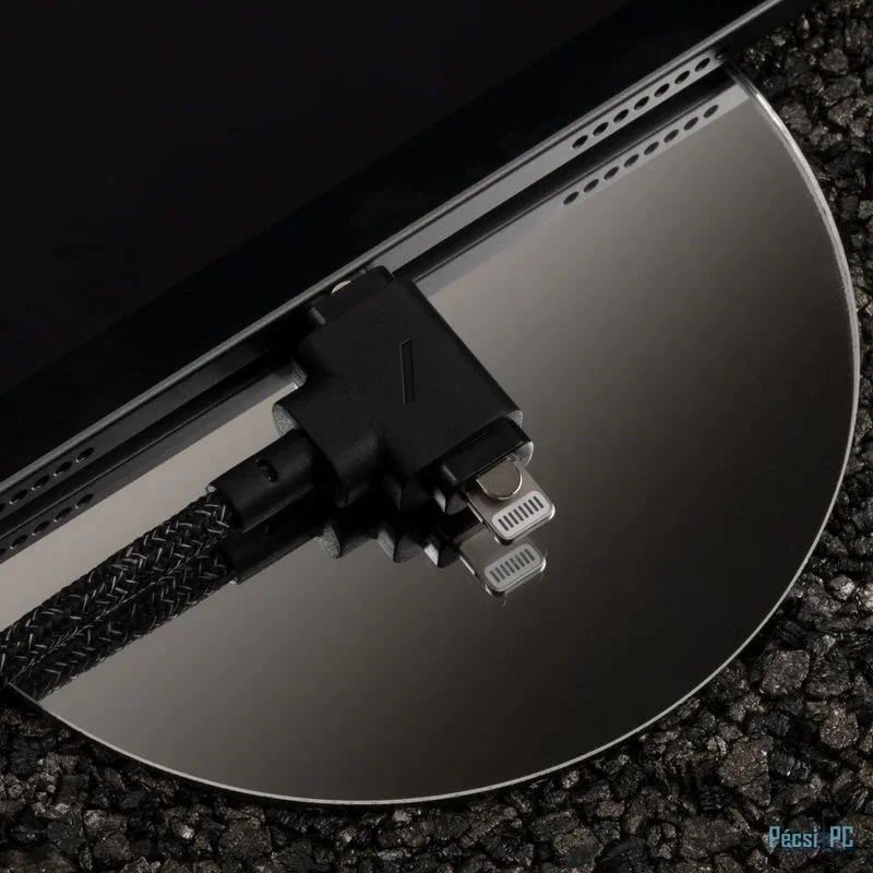 USB kábel, USB-C, USB-C/Lightning, USB2.0, Male/Male, 1,5m, Black/White, Töltőkábel, 90 fokos, Szövetborítás, 2in1