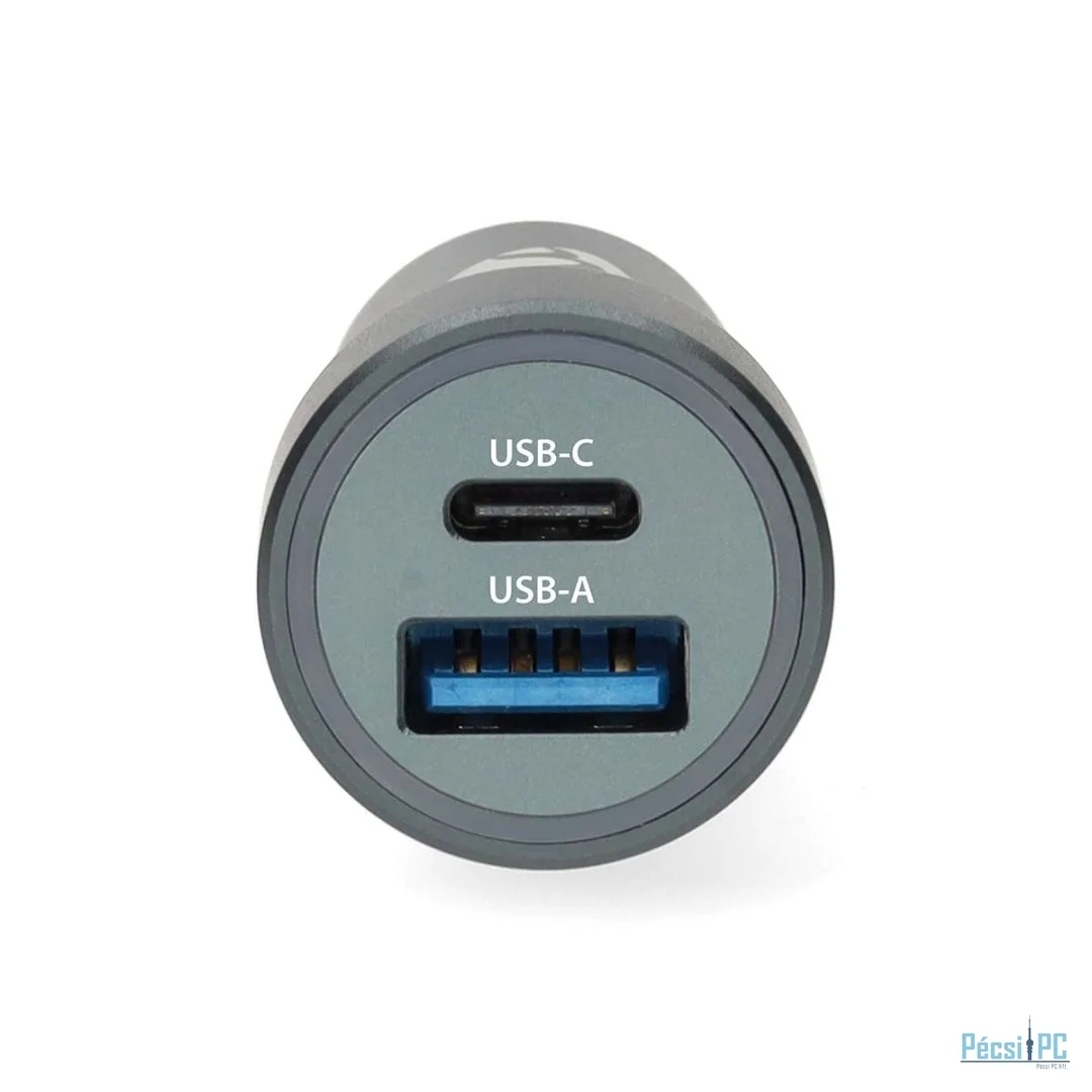 Autós töltő, 1xUSB-A, 1xUSB-C, 5V/9V/12V, 3A, 48W, PD, Black