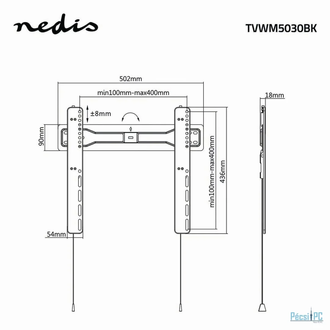 Kijelző, Fali, Min 32", Max 55"