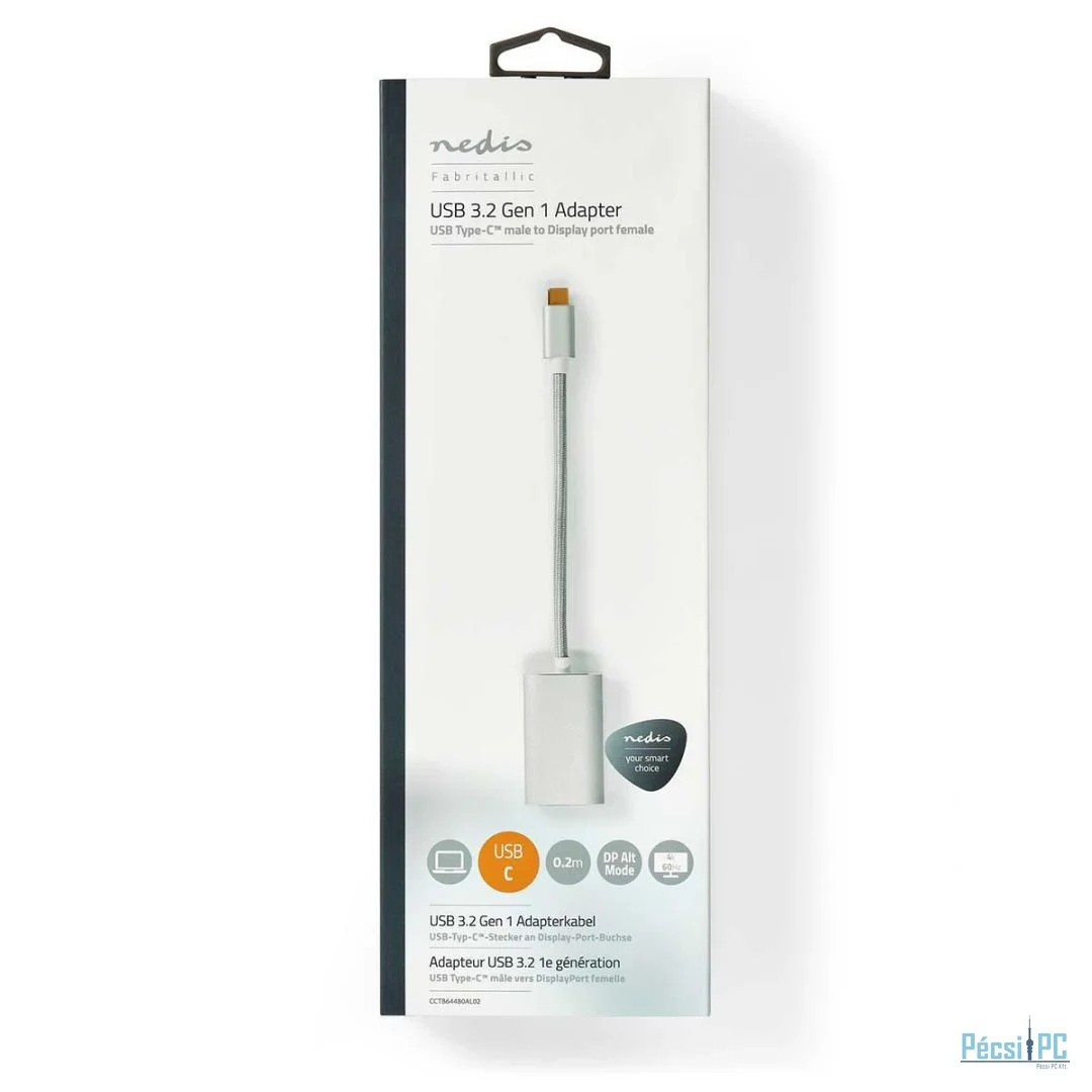 Nedis USB 3.2 Gen 1 USB-C Male - DisplayPort Female USB-C Female 4K60Hz Power delivery 0,20m Grey