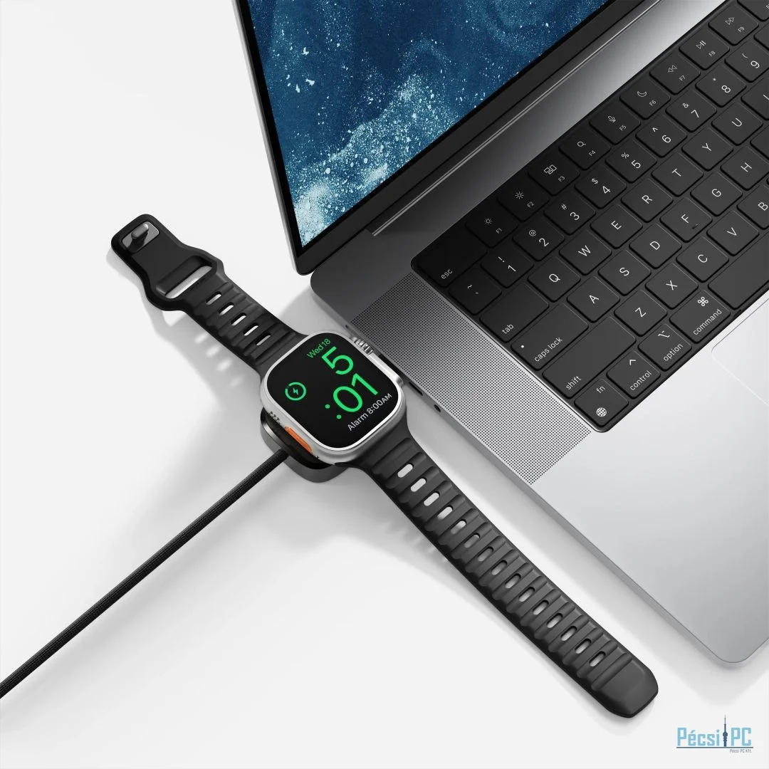 A beépített Apple Watch töltőkorong támogatja a gyorstöltést, így rekordidő alatt feltöltheted az órádat, és hosszú várakozás nélkül folytathatod a napodat. Az USB-C kompatibilitásnak köszönhetően ez a sokoldalú kábel biztosítja azt is, hogy az AirPods, az iPhone (USB-C adapterrel), az iPad és más USB-C eszközök töltésére is alkalmas legyen, így nélkülözhetetlen társad lehet akár útközben, akár az íróasztalodnál.