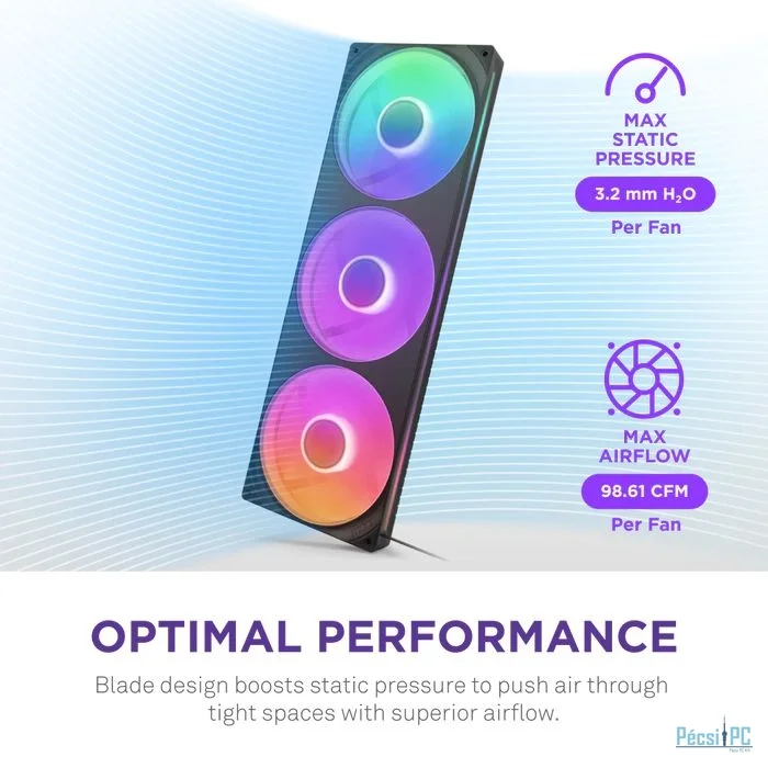 Rendszer, 3x14cm, 500-2000rpm, 34,5dBA, PWM, RGB, Gamer