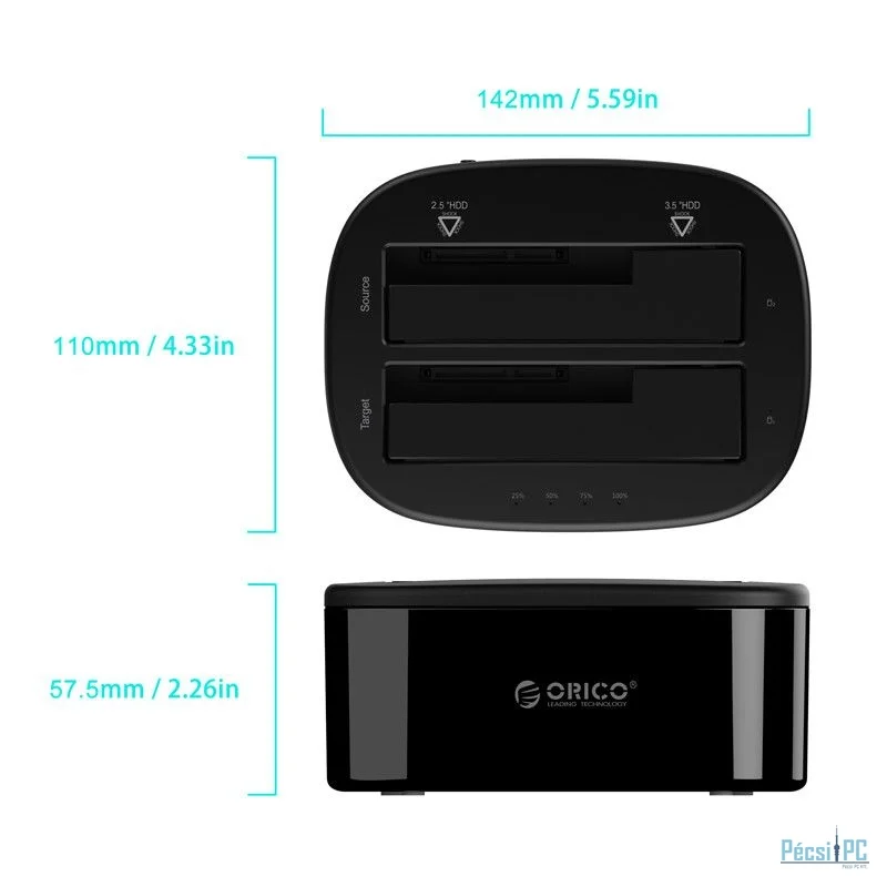 Orico 6228US3-C 2x 2,5"/3,5" HDD/SSD 2 Bay USB3.0 1 to 1 Clone Hard Drive Dock Black