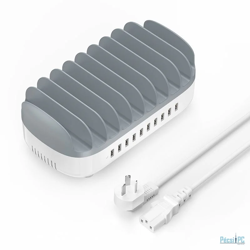 Hálózati töltő, 10xUSB-A, 5V, 2,4A, 120W, White
