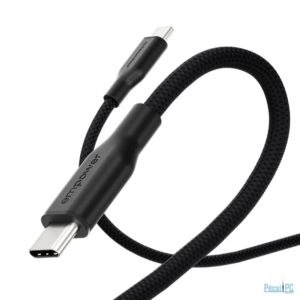 USB kábel, USB-C, USB-C, USB2.0, Male/Male, 1,2m, Black, Töltő és adatkábel, Szövetborítás