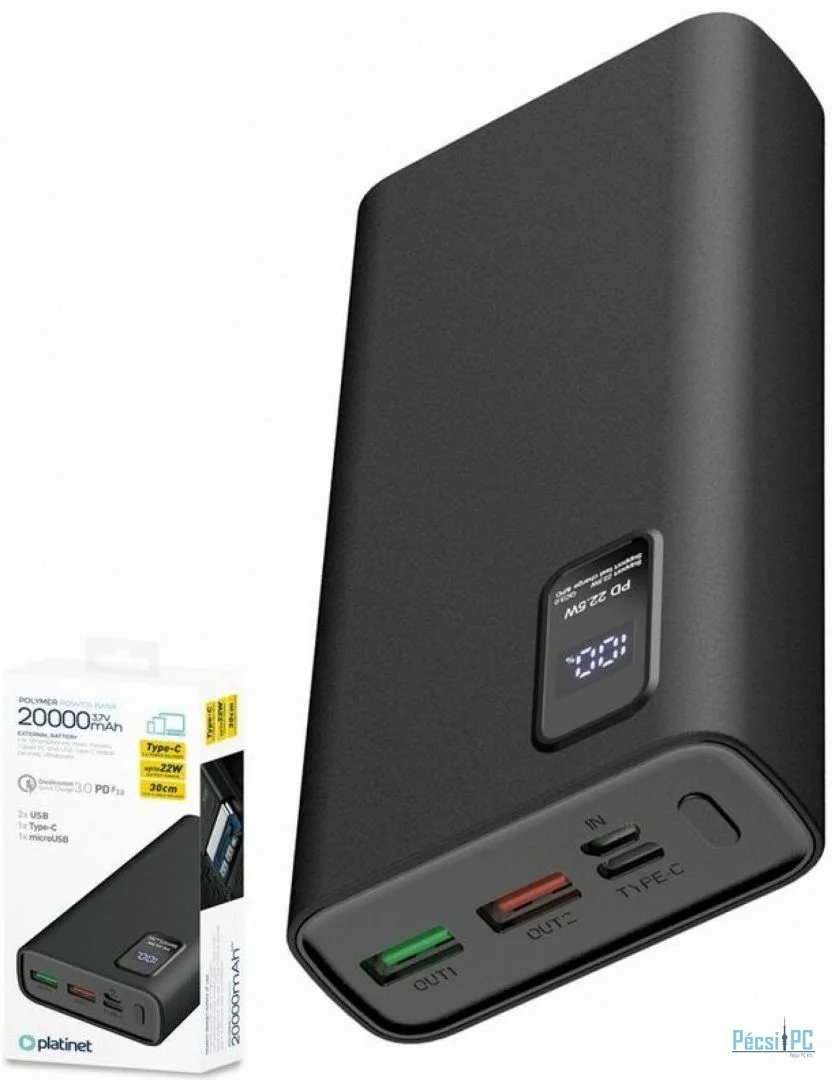 Platinet PMPB20WQC727B 20000mAh Polymer PC3.0 QC3.0 PowerBank LED Screen Black