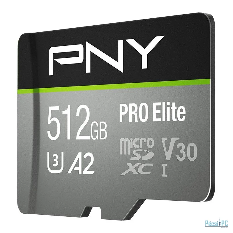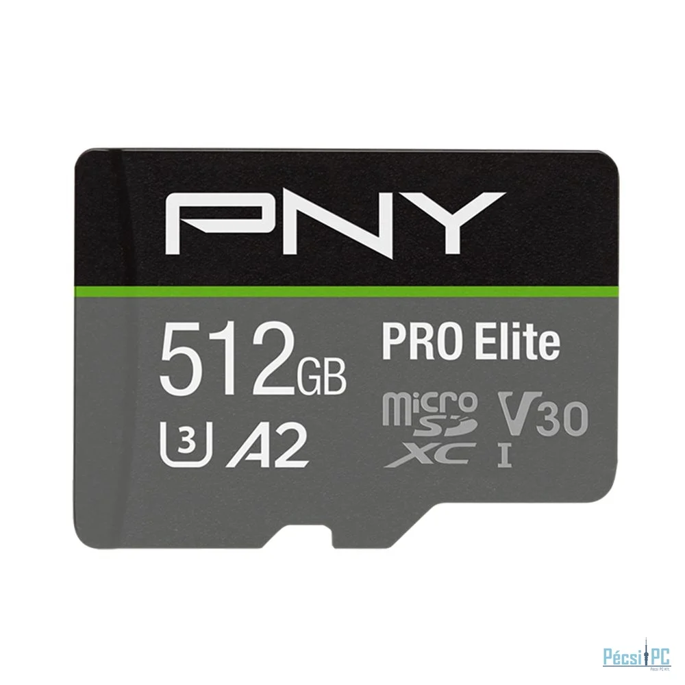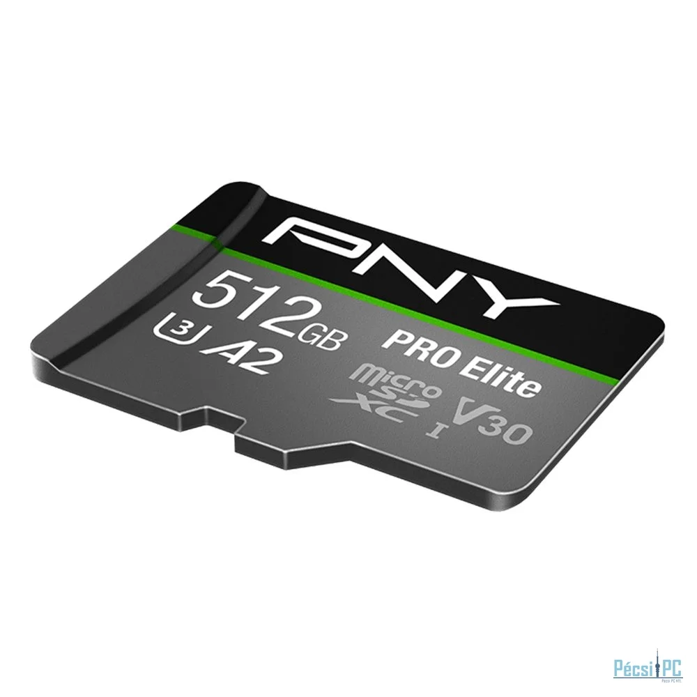 PNY 512GB microSDXC Pro Elite Class 10 U3 V30 A2 + adapterrel