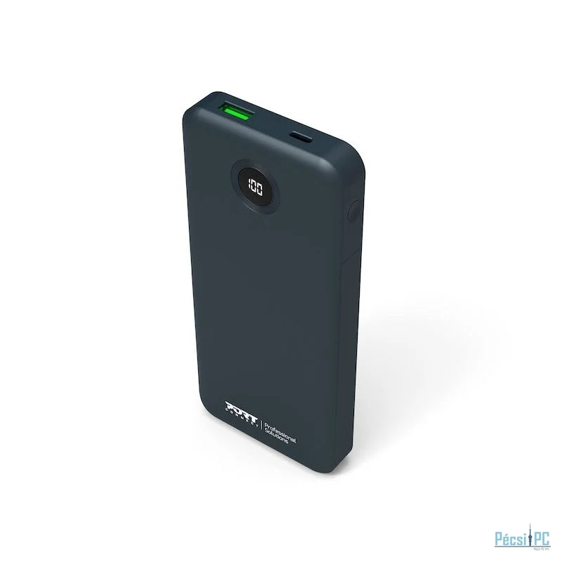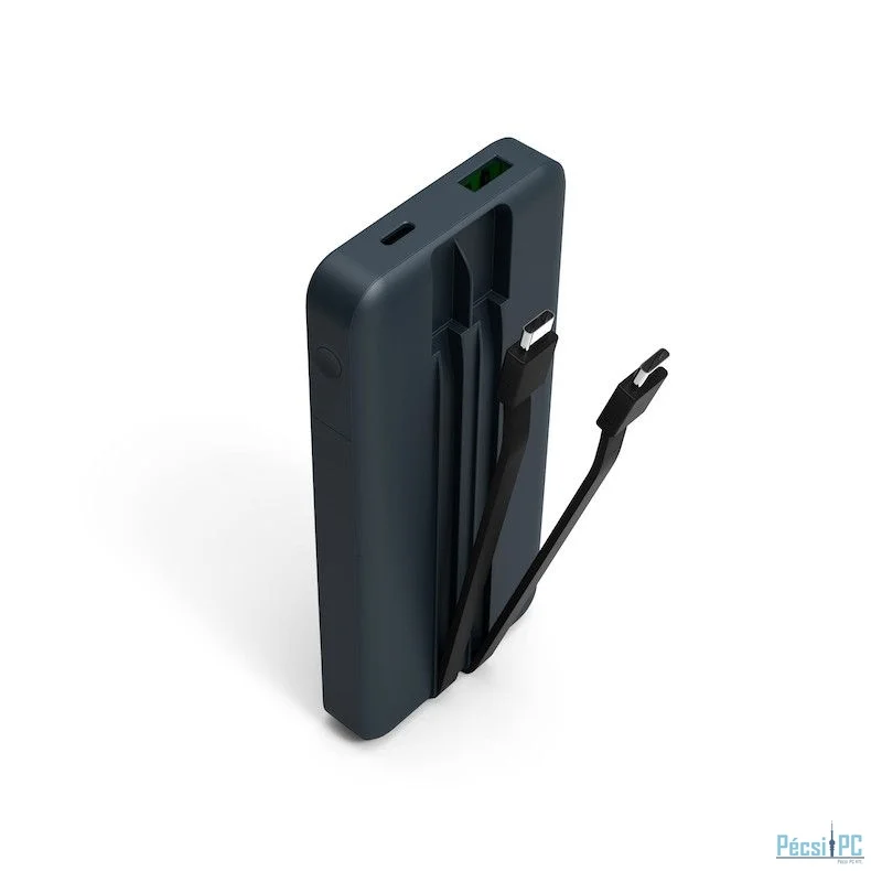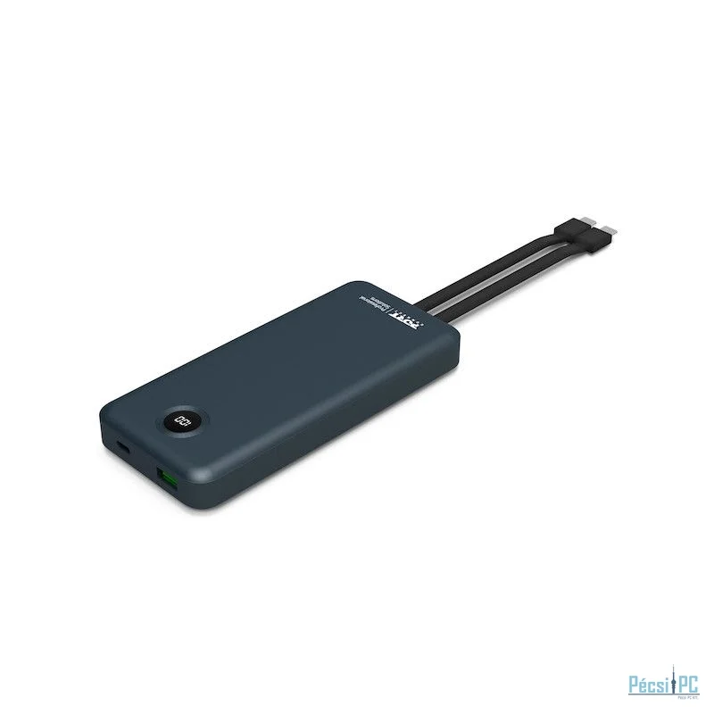 Port Designs 10000mAh Powerbank with Built-in USB-C Cables LCD Display Black