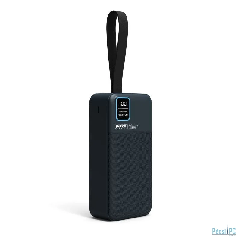 Port Designs 30000mAh Powerbank LCD Display USB-A QC / USB-C / Micro USB Black
