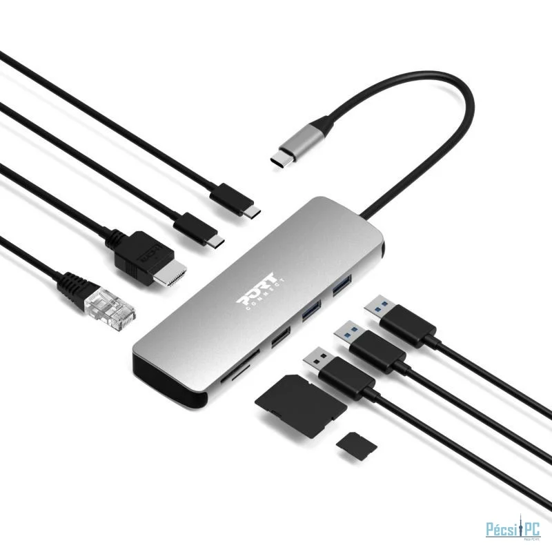 PORT CONNECT USB-C 9in1 dokkolóállomás - Bővítse laptopja csatlakoztathatóságát, és akár kilenc eszközt, köztük 4K-s monitort, hálózatot és kártyákat csatlakoztathat akár 85 W-os teljesítmény mellett.