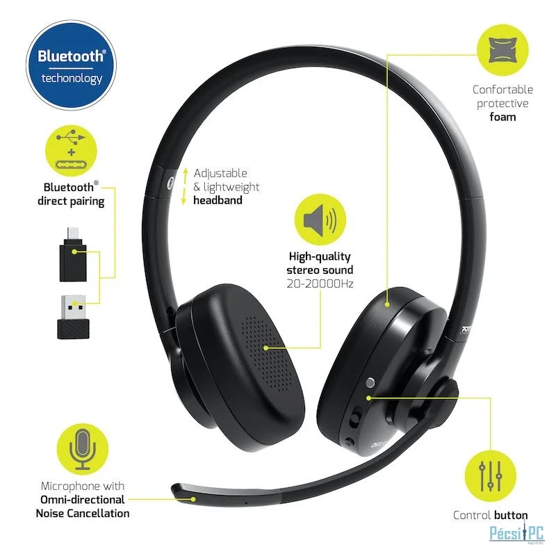 A kényelemre és teljesítményre tervezett Bluetooth® sztereó fejhallgató PORT Connect kivételes hangminőséget kínál professzionális környezetben. Ideális a hosszú munkamenetekhez, tiszta kommunikációt és magával ragadó hangélményt garantál, a modern szakemberek igényeihez igazodva.